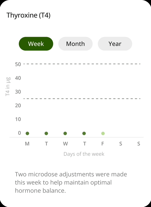A bio-digital system that helps patients manage hypothyroidism through real-time monitoring, adaptive dosing, and AI-assisted care.